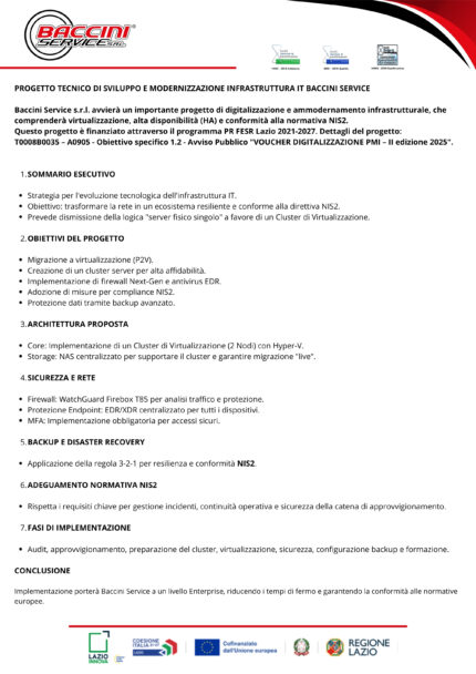 Progetto tecnico di sviluppo e modernizzazione infrastruttura IT BACCINI SERVICE!